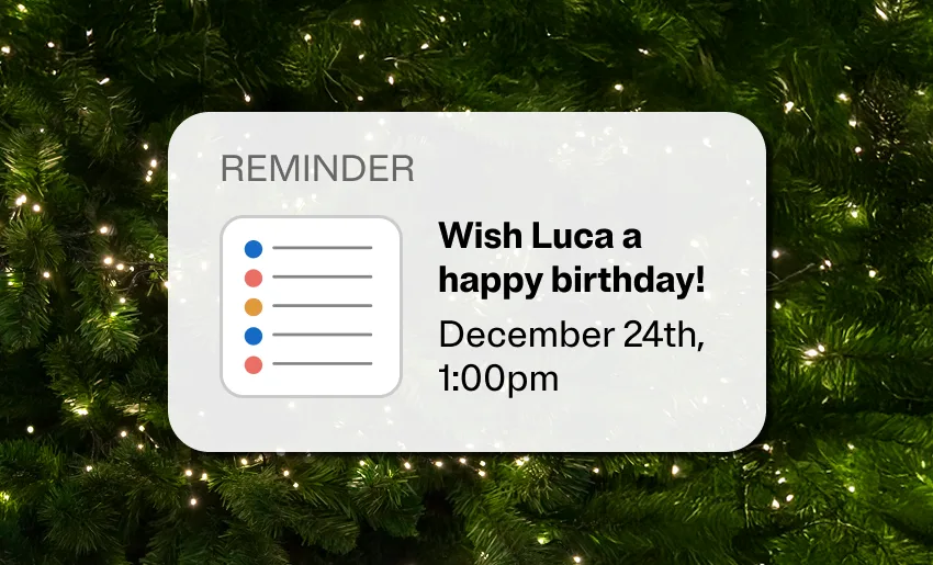 It’s easy to forget a Thanksgiving or Christmas Eve birthday in the midst of all the holiday planning, especially if you’re going to be traveling. Set a reminder in your calendar at a time that works for you to call and sing them Happy Birthday, so they know you’re thinking of them. They’ll feel EXTRA special that you took the time to call amidst the peak holiday rush.