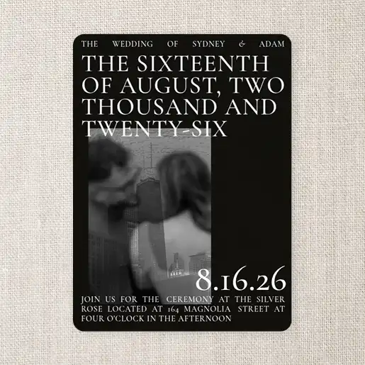 You can also include reception info, the dress code, an "RSVP by" line, and your wedding website on your invitation. Basically, your wedding invitation should fully inform your guests of what to expect and how to prepare for your day of love.