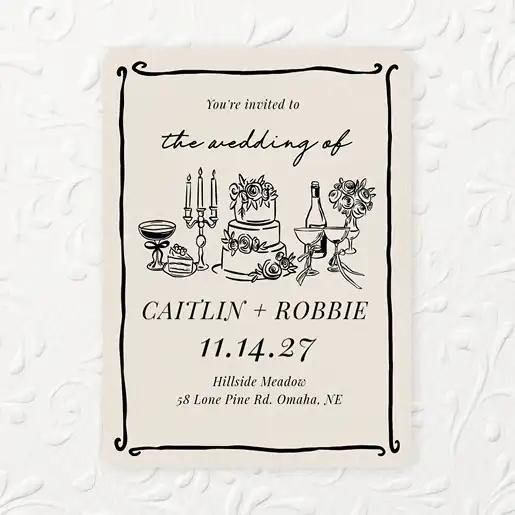 There's no one way to write or format a wedding invitation, but there are a few key components you’ll want to include: