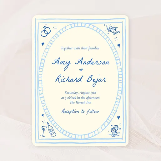 - The request line (ex: “you are cordially invited”, “together with their families,” — or whichever wording you choose)