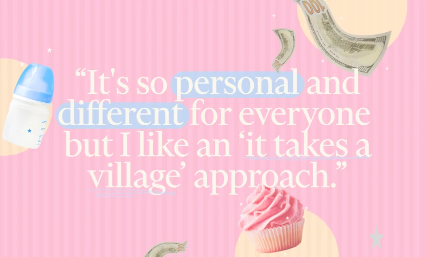 - “I think both sides of the family should help contribute. And if the new parents don't have a big family, or their parents aren't around, friends could also help. It's so personal and different for everyone but I like an ‘it takes a village’ approach.” - Salpy