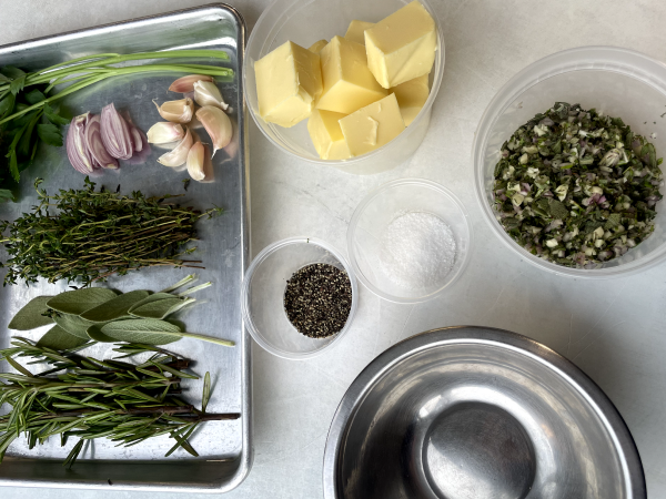 For the Garden Herb Oil and Herb Butter, they both start with, in my opinion, the holy trinity of fresh rosemary, sage, and thyme.
