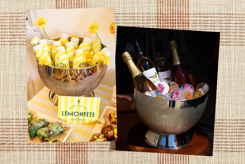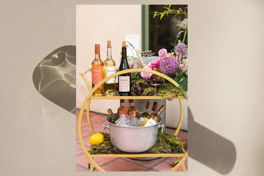 Don’t feel like you need to offer everything. Two cocktails or just wine is more than enough, especially if presented thoughtfully. You can even skip the bartender entirely and create a styled, self-serve drink station.