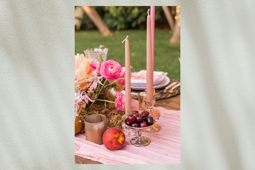 Build a toolkit of neutral, reusable pieces, natural block print tablecloths, wooden bowls, glass coupes. They change vibe according to whatever florals or tabletop accents you bring in.