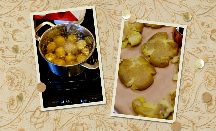 - The day of the party, a few hours before your guests arrive, take the potatoes out of the fridge and let them come to room temperature. This will make them easier to smash without breaking apart.