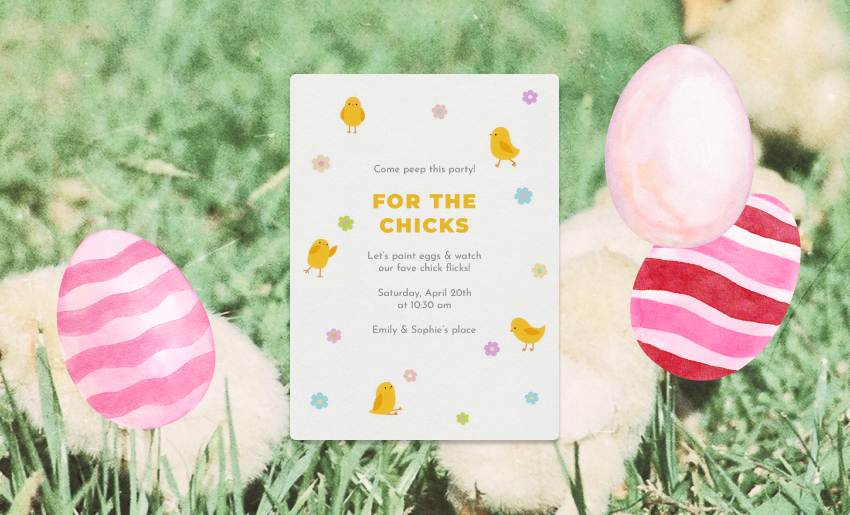 - The setup: Choose your own adventure! First, think about how many people you’ll be inviting. If this is an intimate gathering for friends, you may be able to have the egg painting and chick-flick-viewing happen at the same time. If you’re inviting a large group, plan to have one area designated for a few people to paint eggs at at time, and leave your TV area open (and stocked with snacks) as a way to keep guests who aren’t painting engaged! People will naturally flow between activities.