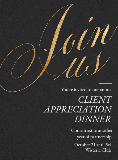 From client appreciation to employee appreciation to customer appreciation, there's a lot your business can be thankful for. Kick off your appreciation event with an online Invitation you can send via text or email.