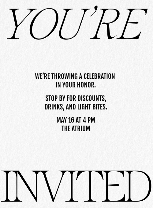 Congratulations to you! Celebrate a major milestone with a professional and sleek online Invitation. Choose a design that fits the occasion, then send it off via email or text.
