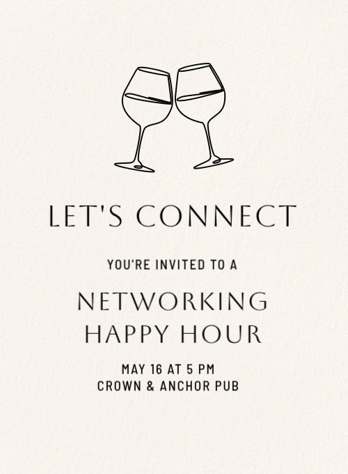Time to start making connections! Find the best template for your professional networking event, customize it, then easily send it to guests via text or email.