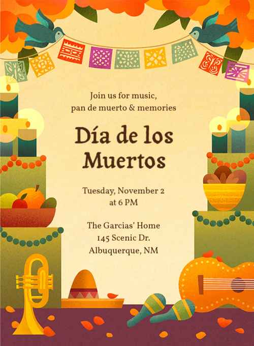 Día de los Muertos begins on Sunday, November 1, 2026! Browse Evite's Día de los Muertos Invitations and invite family and friends via text or email to celebrate.