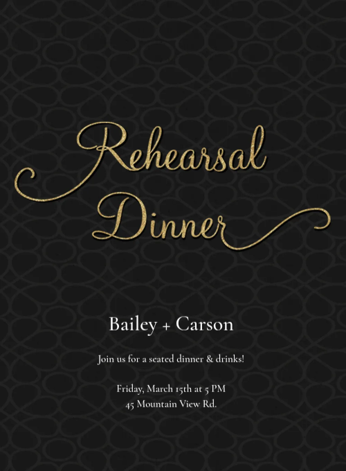 Check out Evite's custom collection of Rehearsal Dinner Invitations. Easily send your invites via text or email and conveniently track RSVPs all in one easy platform.