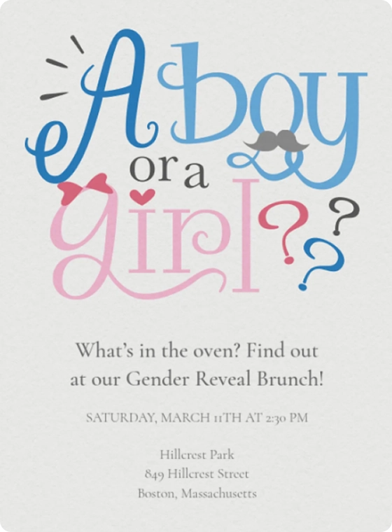 - Before the baby is born: Whether you’re looking for Baby Sprinkle Invitations, Gender Reveal Invitations, or Parenthood Journey Invitations that celebrate the myriad ways people can become parents, Evite has all your pre-arrival invitation needs covered!